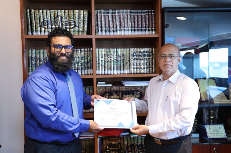 ޙާފިޡުންގެ ގްރެޖުއޭޝަނުގައި ބޭނުންކުރާ ސްކްރޯލްގެ ބޭރުގައި އޮންނަ ޤުރްއާނުގެ އާޔަތް ހިލޭ ސާބަހަށް ފަރުމާކޮށްދެއްވި އުސްތާޛު ޢަބްދުލްމުޢީދު ޙަސަން އަށް އެކަމުގެ އަގުވަޒަންކުރުމުގެ ގޮތުން ހަނދާނީ ލިޔުން ދެއްވުން.