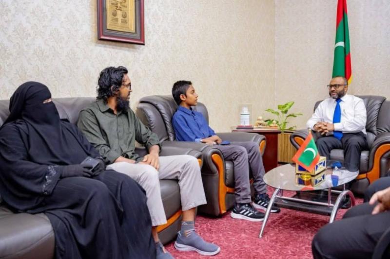 ކީރިތި ޤުރުއާން ހިތު ދަސްކޮށް 2025 ޖަނަވަރީ 12 ވަނަދުވަހު ޙާފިޡްކަމުގެ އިމްތިޙާން ނިންމައި މަތީ ކާމިޔާބީއެއް ހޯދި، އުމުރުން 12 އަހަރު ޒަލަފް ބިން ނާފިޢު ( ޝާދީ ވިލާ، އދ. މަހިބަދޫ) އާ އިސްލާމީކަންތައްތަކާ ބެހޭ ވަޒީރު ޑރ. މުޙައްމަދު ޝަހީމް ޢަލީ ސަޢީދު ބައްދަލުކުރައްވައި ހިތްވަރުދެއްވުން