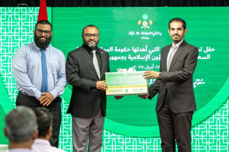 ސަޢޫދީ ޢަރަބިއްޔާގެ ސަރުކާރުން ހަދިޔާކުރެއްވި 25000 މުޞްޙަފާއި އިސްލާމީކަންތައްތަކާ ބެހޭ ވަޒީރު ޑރ. މުޙައްމަދު ޝަހީމް ޢަލީ ސަޢީދު ޙަވާލުވެވަޑައިގަތުން. މި މުޞްޙަފުތައް ފޮނުވޭނީ ކީރިތި ޤުރްއާން ޙިފްޒުކުރާ ސެންޓަރުތަކާއި ކުލާސްތަކަށާއި އަދި ޤުރްއާން ޙިފްޒު މަޝްރޫޢުތަކަށް.