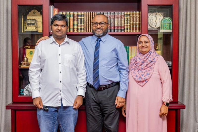 ޤުރްއާން ހިތުދަސްކޮށް ނިންމައި، ކީރިތި ޤުރްއާނާބެހޭ ޤައުމީ މަރުކަޒުގެ ޙާފިޡުން އިމްތިޙާނުކުރާ ކޮމެޓީއަށް ކިޔައިދީ ފާސްވި މުޙައްމަދު ނައިސަމް ނަސީމާއި އޭނާގެ ބެލެނިވެރިޔާއާ އިސްލާމީކަންތައްތަކާ ބެހޭ ވަޒީރު ޑރ. މުޙައްމަދު ޝަހީމް ޢަލީ ސަޢީދު ބައްދަލުކުރައްވައި ހިތްވަރުދެއްވައިފި.