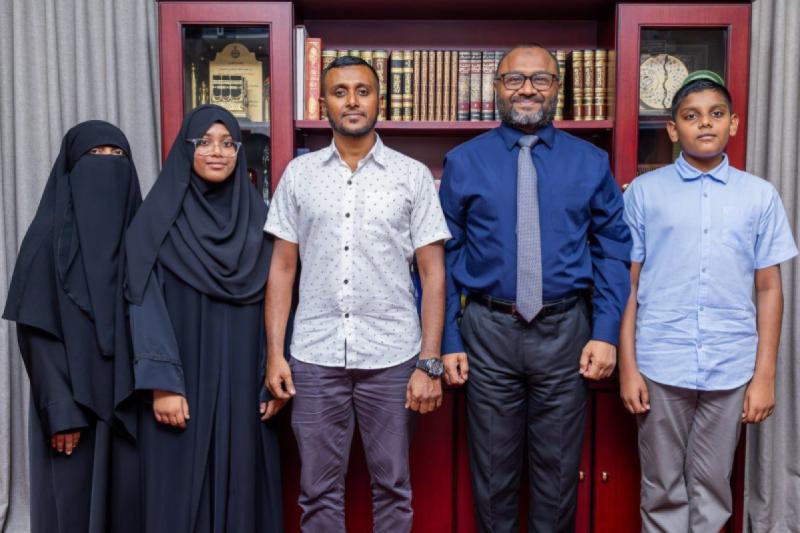ޤުރްއާން ހިތުދަސްކޮށް ނިންމައި، ކީރިތި ޤުރްއާނާބެހޭ ޤައުމީ މަރުކަޒުގެ ކޮމެޓީއަށް ކިޔައިދީ ފާސްވި ޢުމުރުން 15 އަހަރުގެ އާލާ އިބްރާހީމް ޒިޔާދު ޒަކަރިއްޔާ (ދަފްތަރު ނަންބަރު ދރ 2272 / މާލެ) އާއި އޭނާގެ ބެލެނިވެރިންނާ އިސްލާމީކަންތައްތަކާ ބެހޭ ވަޒީރު ޑރ. މުޙަައްމަދު ޝަހީމް ޢަލީ ސަޢީދު ބައްދަލުކުރައްވައި ހިތްވަރު ދެއްވައިފިއެވެ. ވަޒީރުގެ ވާހަކަފުޅުގައި ކޮންމެ ދާއިރާއަކުން ކިޔެވިކަމުގައިވިޔަސް ޤުރްއާން މުރާޖަޢާކޮށް، ޤުރްއާނަށް ކޮންމެވެސް ގޮތަކުން ޚިދުމަތްކުރުމުގައި ދެމިހުރުމަށް ނަޞޭޙަތްތެރިވެ ވަޑައިގަތެވެ.