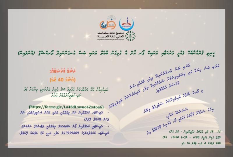 ކީރިތި ޤުރްއާނާބެހޭ ޤައުމީ މަރުކަޒާއި ޢަރަބިކް ފޯރ އޯލް އާ ގުޅިގެން ބާއްވާ ޢަރަބި ބަސް އުނގަންނައިދޭ ވޯރކްޝޮޕްގައި ރަޖިސްޓަރ ކުރެއްވުމަށް ފުރުސަތު ހުޅުވާލުން.