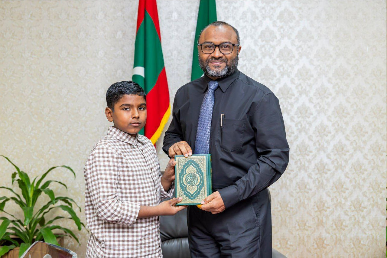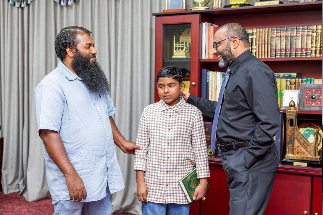އިސްލާމީކަންތައްތަކާ ބެހޭ ވަޒީރު ޑރ. މުޙައްމަދު ޝަހީމް ޢަލީ ސަޢީދު، ޙާފިޡުކަމުގެ ސަނަދު ޙާސިލްކުރެެއްވި އަލްޙާފިޡް ޔޫސުފް ބިން މާޒިން (އުދަރެސް، ރ. އިނގުރައިދޫ) އާއި ބައްދަލުކުރައްވައި ހިތްވަރު ދެއްވައިފި.