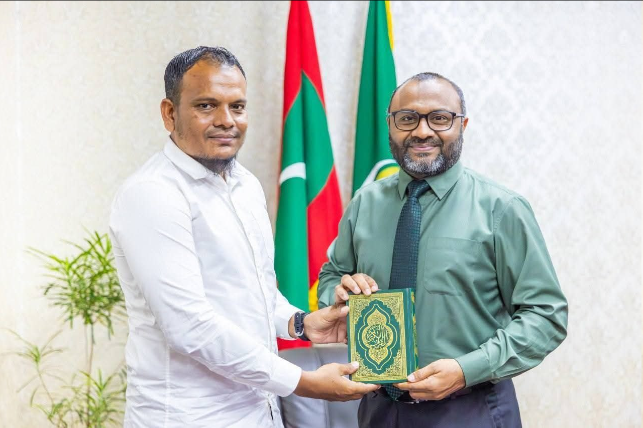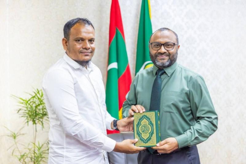 އިސްލާމީކަންތައްތަކާ ބެހޭ ވަޒީރު ޑރ. މުޙައްމަދު ޝަހީމް ޢަލީ ސަޢީދު، ކީރިތި ޤުރްއާން ހިތުދަސްކޮށް ޙާފިޡުކަމުގެ ސަނަދު ޙާސިލުކުރި އަލްއުސްތާޛު އަލްޙާފިޡު މުޙައްމަދު ޢާސިރު (ހެޕީކޯނަރ، / ގއ. ކަނޑުހުޅުދޫ) އާއި އޭނާގެ ލޮބުވެތި މަންމައާ ބައްދަލުކުރައްވައި ތަހުނިޔާ ދަންނަވައި ހިތްވަރު ދެއްވައިފި.