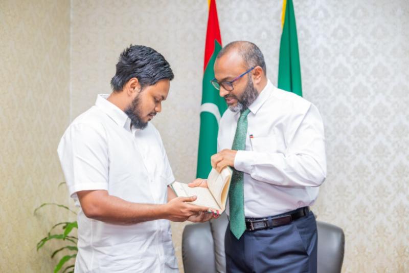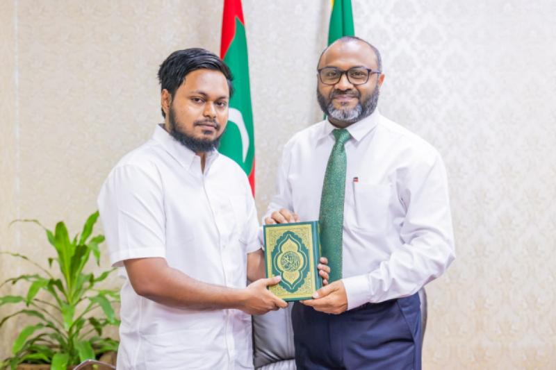 ކީރިތި ޤުރުއާން ހިތުދަސްކުރައްވާ ފުރިހަމަ ކާމިޔާބީއެއް ހޯދި، އުމުރުން 23 އަހަރުގެ ފާއިން ފަރުހާދު (ރަނައުރާމާގެ، ށ. ފޯކައިދޫ) އާއި އިސްލާމީކަންތައްތަކާއި އައުޤާފާ ބެހޭ ވަޒީރު ޑރ. މުޙައްމަދު ޝަހީމް އަލީ ސަޢީދު ބައްދަލުކުރައްވާ ހިއްވަރު ދެއްވައިފި