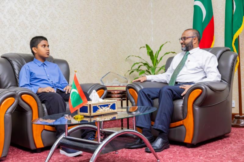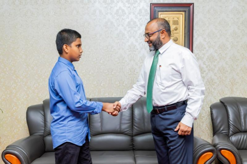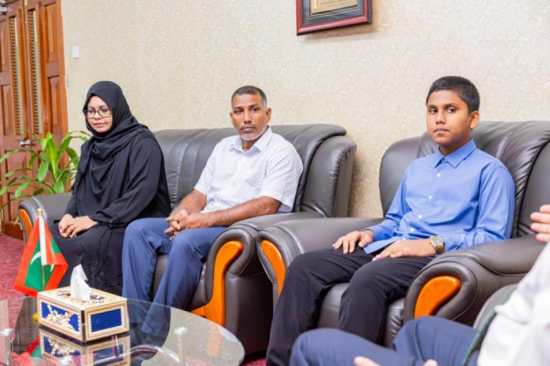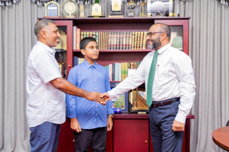 ކީރިތި ޤުރުއާން ހިތުދަސްކުރައްވާ ފުރިހަމަ ކާމިޔާބީއެއް ހޯދި، އުމުރުން 13 އަހަރުގެ ޢަބްދުﷲ ޢައްޔާޝް އިބްރާހީމް ޝާހް (ދޭލިޔާގެ، ހއ. ކެލާ) އާއި އިސްލާމީކަންތައްތަކާއި އައުޤާފާ ބެހޭ ވަޒީރު ޑރ. މުޙައްމަދު ޝަހީމް އަލީ ސަޢީދު ބައްދަލުކުރައްވާ ހިއްވަރު ދެއްވައިފި
