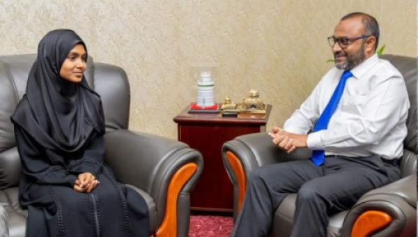 މެލޭޝިޔާގައި އޮތް ބައިނަލްއަޤުވާމީ ޤުރްއާން މުބާރާތުން، މުޅި ޤުރްއާން ހިތުދަސްކޮށް ކިޔެވުމުގެ ގޮފިން 3 ވަނަ ހޯދި ދަރިވަރު، ޢާއިޝަތު ޝާޔާ ޒާހިރަށް އިސްލާމީ ކަންތައްތަކާ ބެހޭ ވަޒީރު ވެލާނާ އިންޓަނޭޝަނަލް އެެއާރޕޯޓުން އިސްތިޤުބާލުކުރައްވައި މަރުޙަބާ ވިދާޅުވު